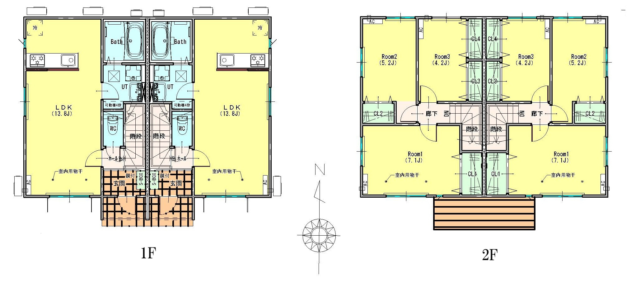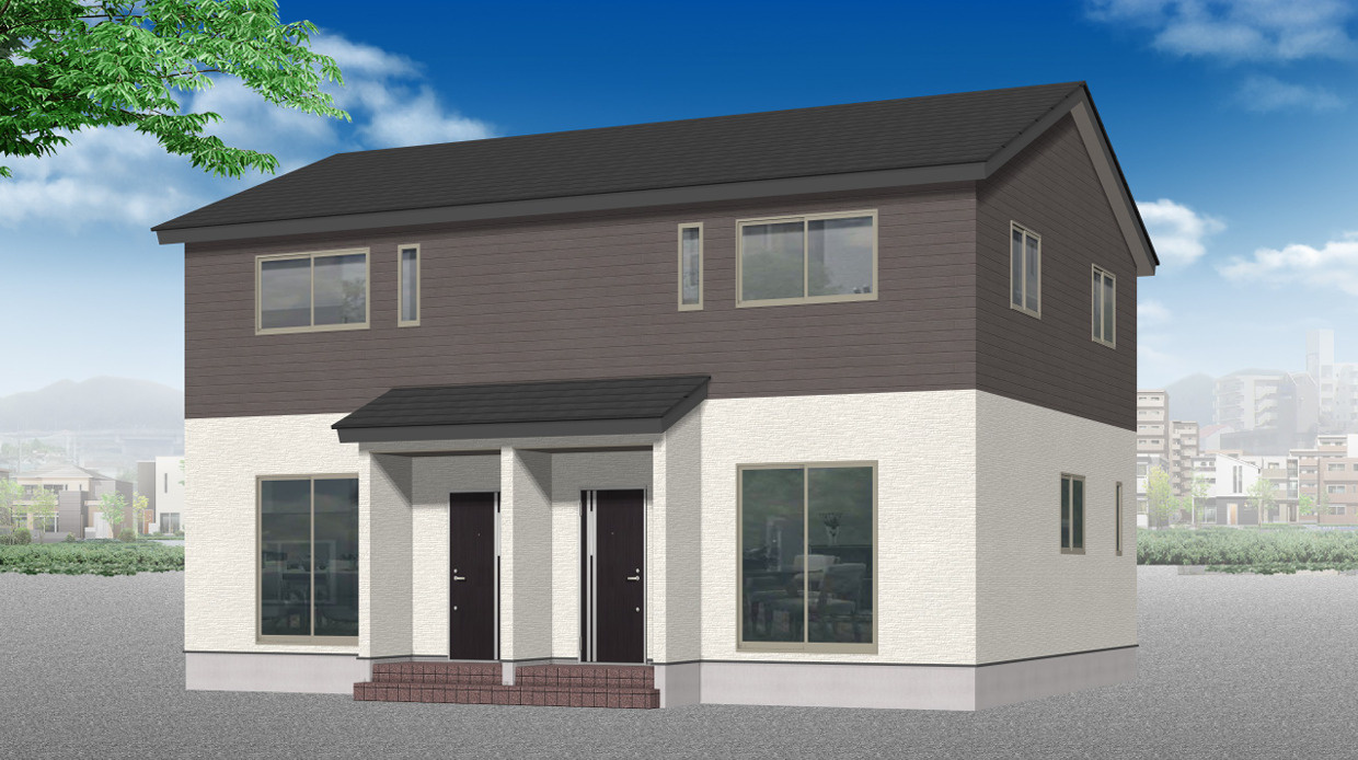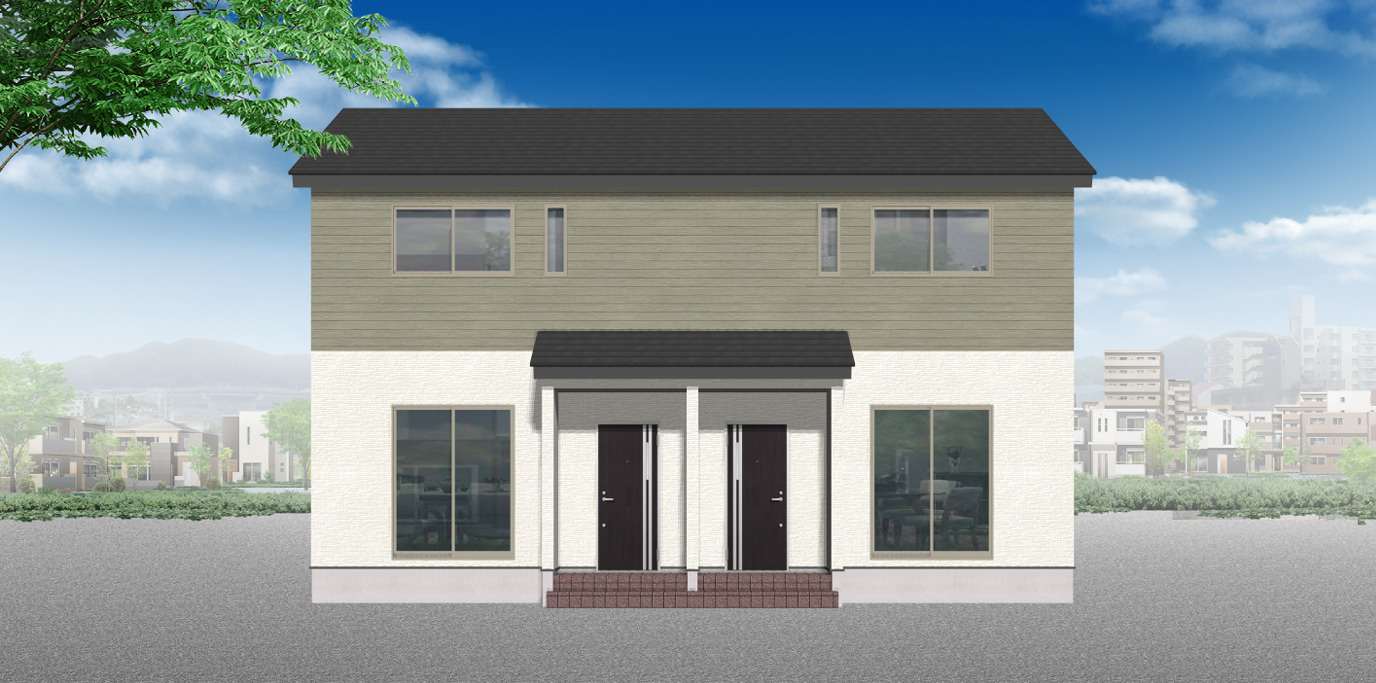全戸南向き・3LDK(各棟2戸)のゆとりある住まいに、駐車場2台分・全室エアコン完備で快適な暮らしをサポートします。
